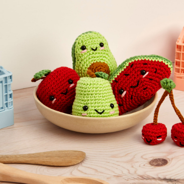 - fruits et légumes décoratifs (avocat, citron, fraise, cerise) ;